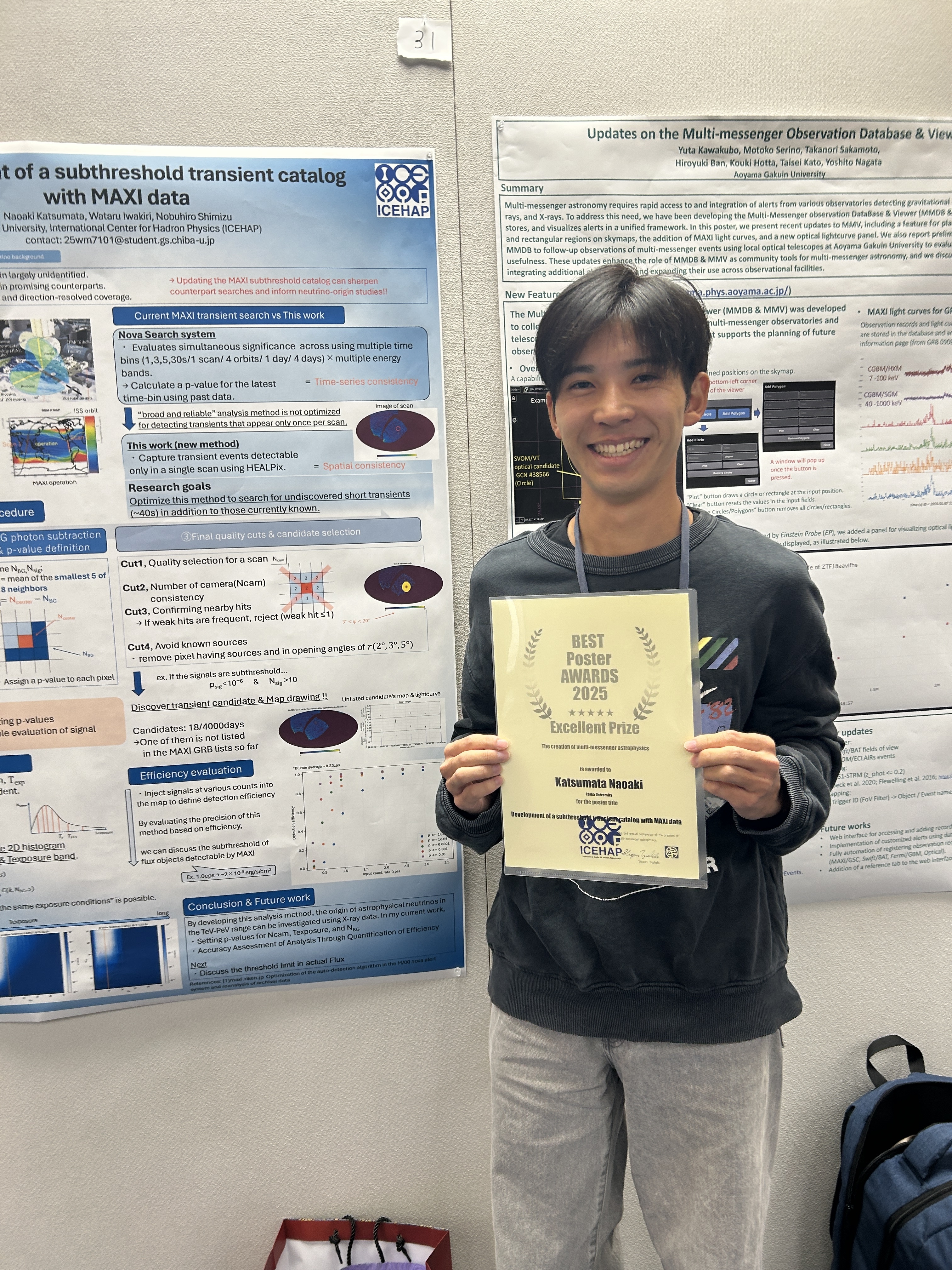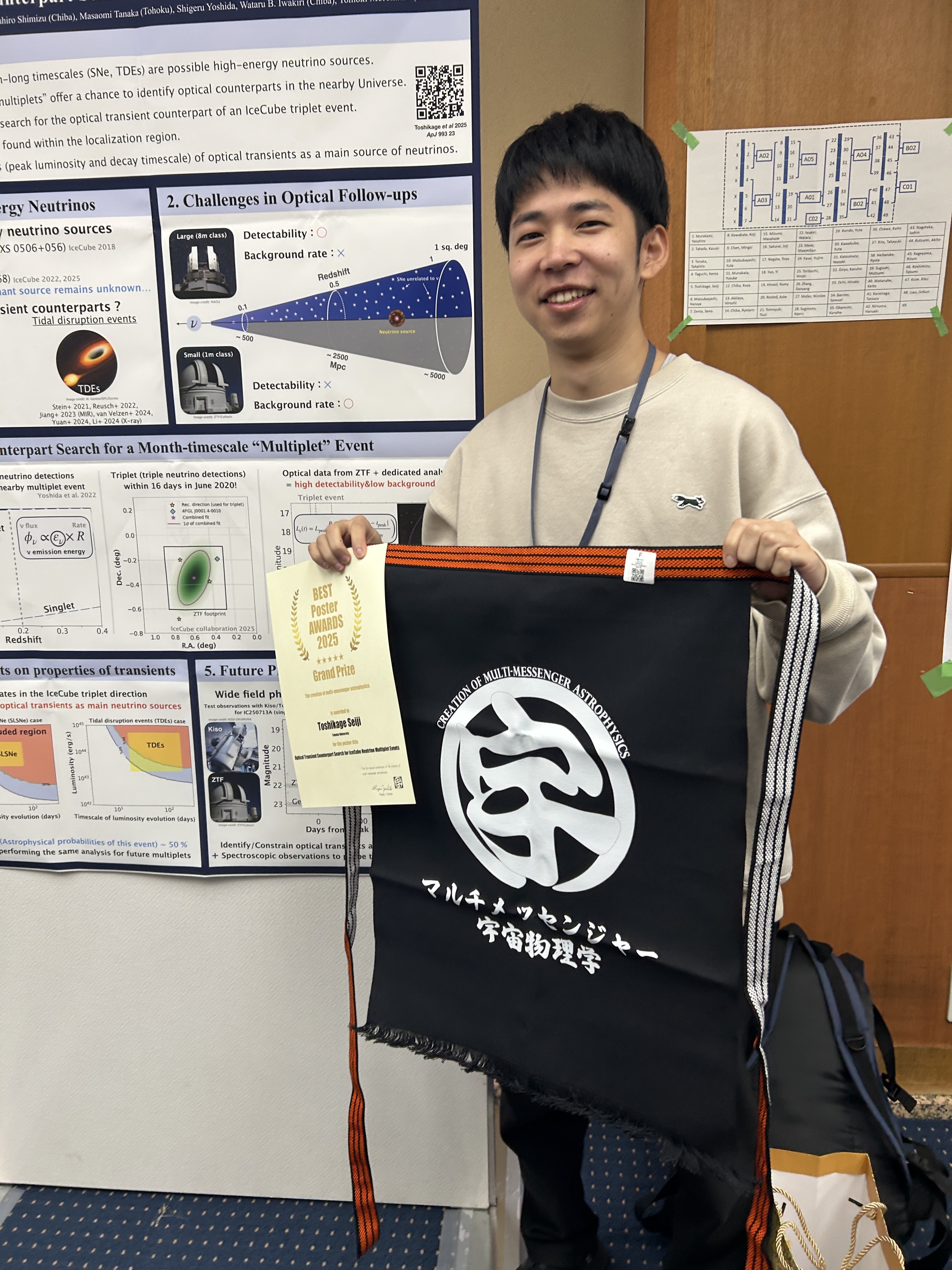 The workshop featured 50 poster presentations on multi-messengers ranging from electromagnetic waves to gravitational waves and neutrinos, covering a wide variety of topics from instrument development, data analysis, and theory.
